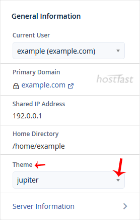 2. In the General Information panel. You should see a Theme option with a drop-down menu.