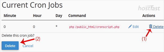 2. Under the Delete this cron job?, click on Delete.