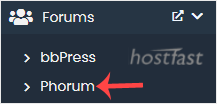 4. On the left side, locate the Forums category. Click on it and then on the Phorum link that appears.