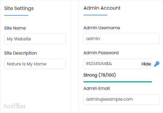 • Admin Email: Your email address. It is helpful for admin account password reset, notification, etc.