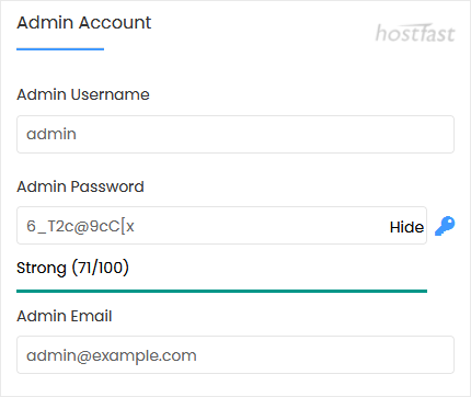 7. Under the Admin Account field, enter the following information: