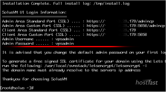 Don't forget to change your default username and password for SolusVM. The default username/password is not secure, and it is easy for anyone to access your panel using them.