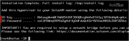 Step 3: Once it completes, it will show you the Slave keys and further instructions for your virtualization type. You can now use these keys to add a node to your SolusVM Master panel. You will need to have a SolusVM Slave license for each node.